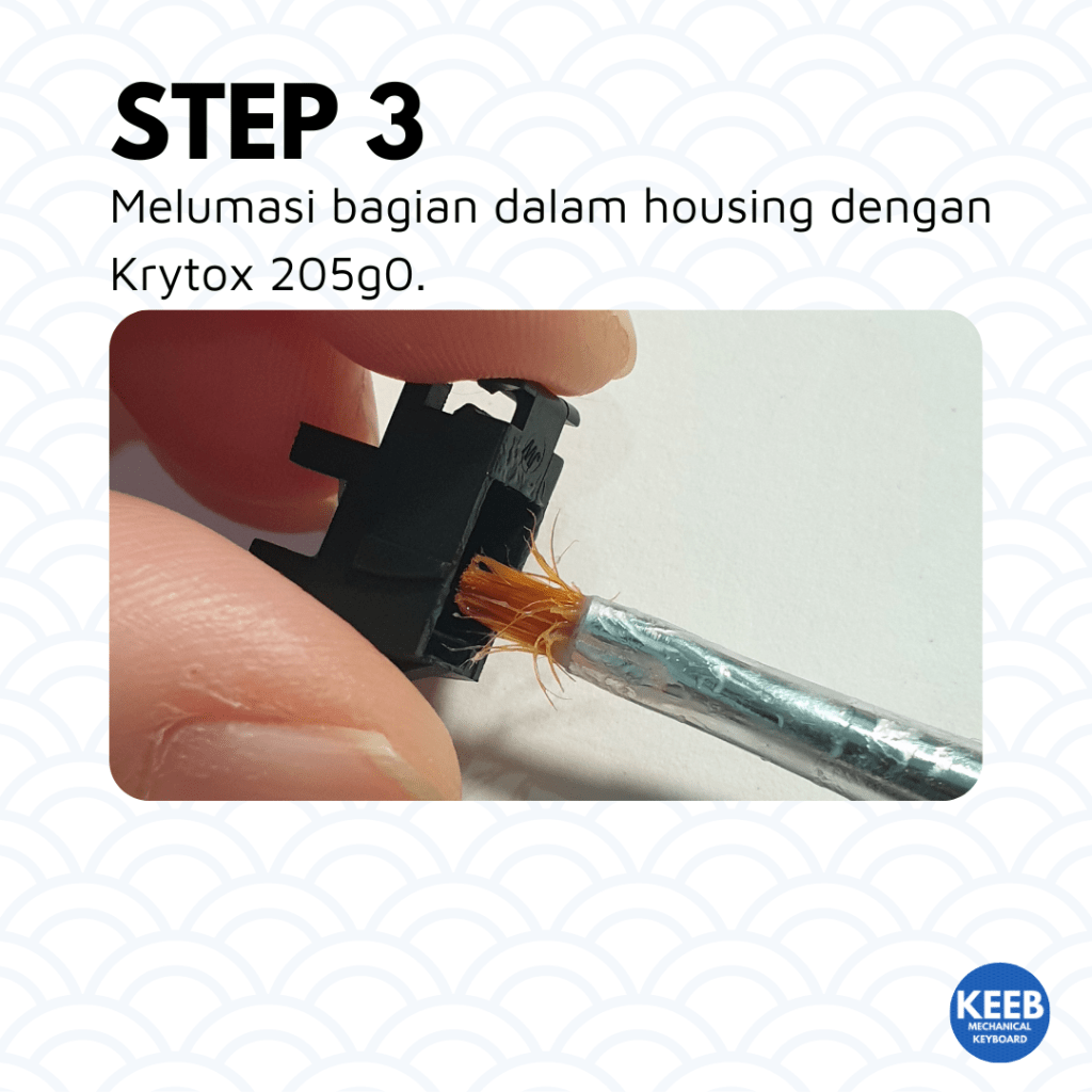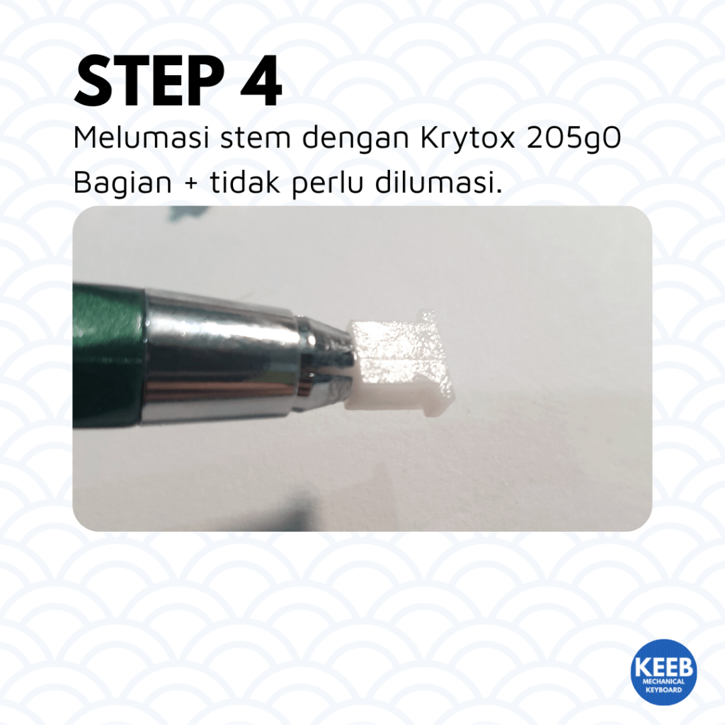 Untuk melumasi bagian housing dan stem, Anda butuh Krytox 205g0.