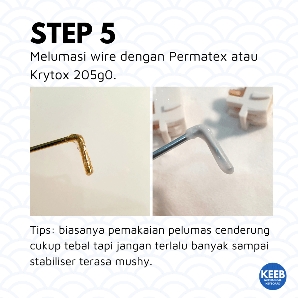 Untuk melumasi wire, ada lebih banyak pilihan. Anda bisa menggunakan Krytox 205g0, Krytox XHT-BDZ, atau Permatex.