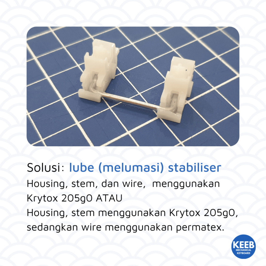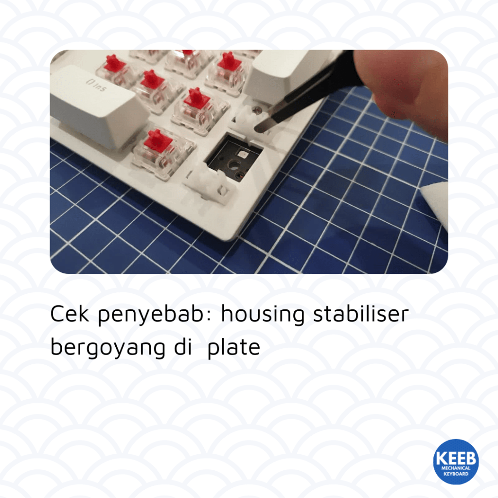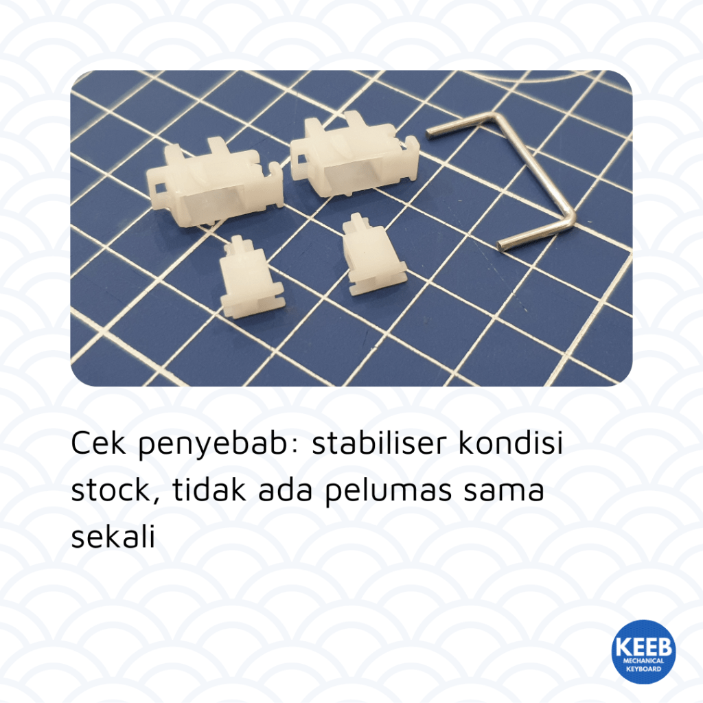 Tidak ada gunanya kita mengganti stabiliser, band-aid mod dan melumasi stabiliser sampai pelumas luber kemana-mana kalau ternyata penyebabnya adalah keycap.