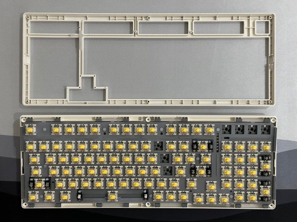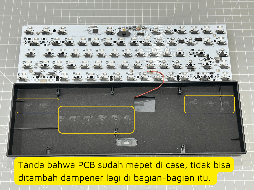 Pada bottom case tidak ada foam karena foam akan menghambat flex dari gasket mount.