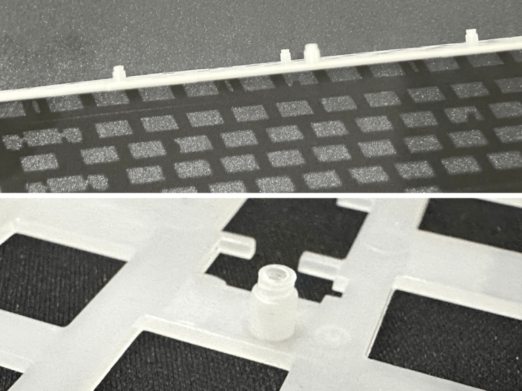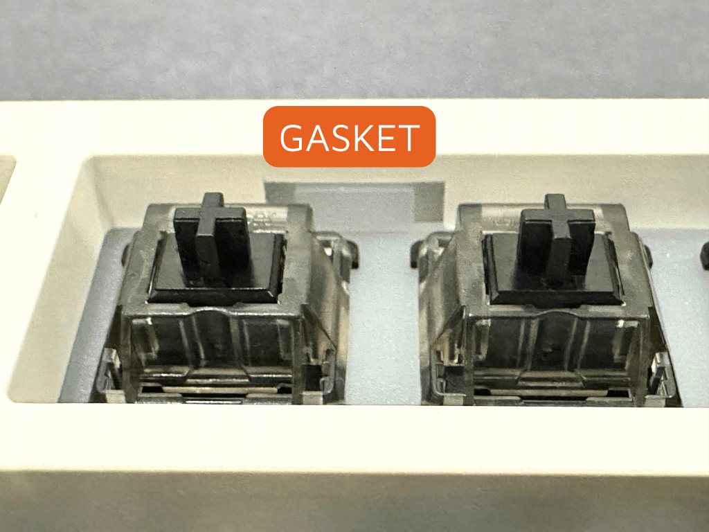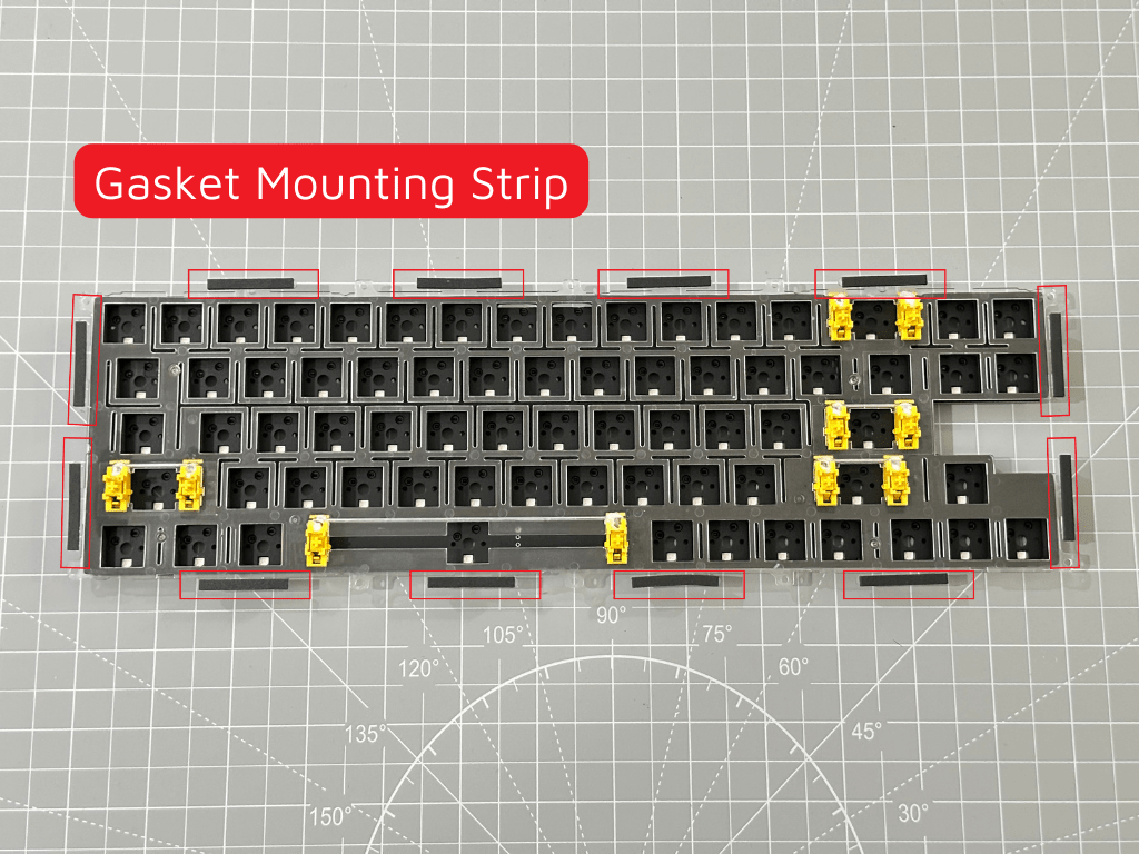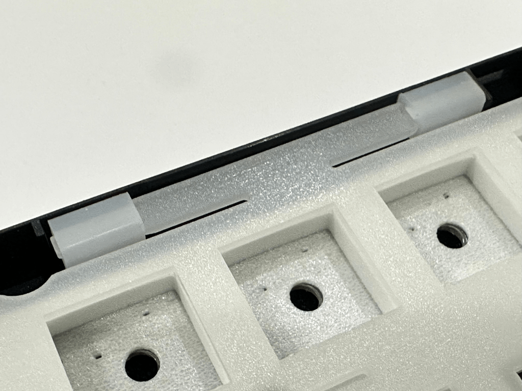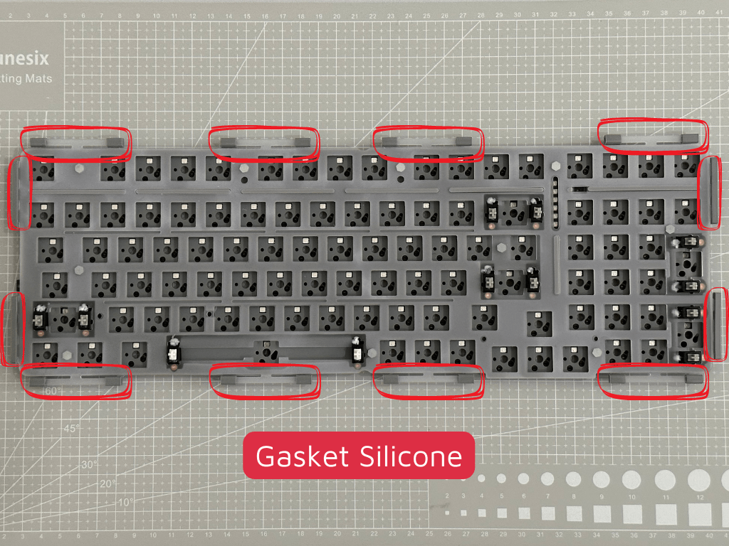 MOUNTING NOIR x YUNZII Vol 1 menggunakan gasket mount. Anda bisa melihat posisi gasket silicone di sekeliling plate pada gambar di bawah ini. Gasket mount ini membuat typing feel jadi lebih empuk daripada tray mount.