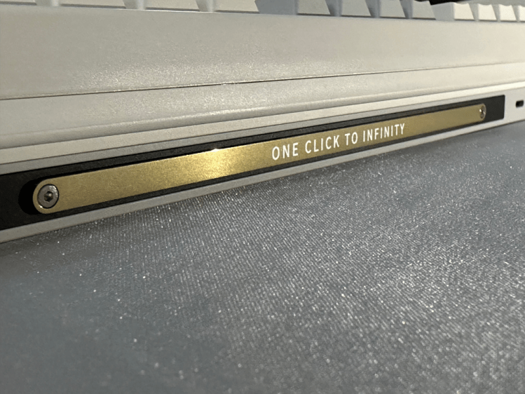 Penampilan NOIR x YUNZII Vol 1 berbeda dengan keyboard brand lokal yang lain karena ada aluminium weight di bawah dan aksen metal bertuliskan “ONE CLICK TO INFINITY” di belakang.
