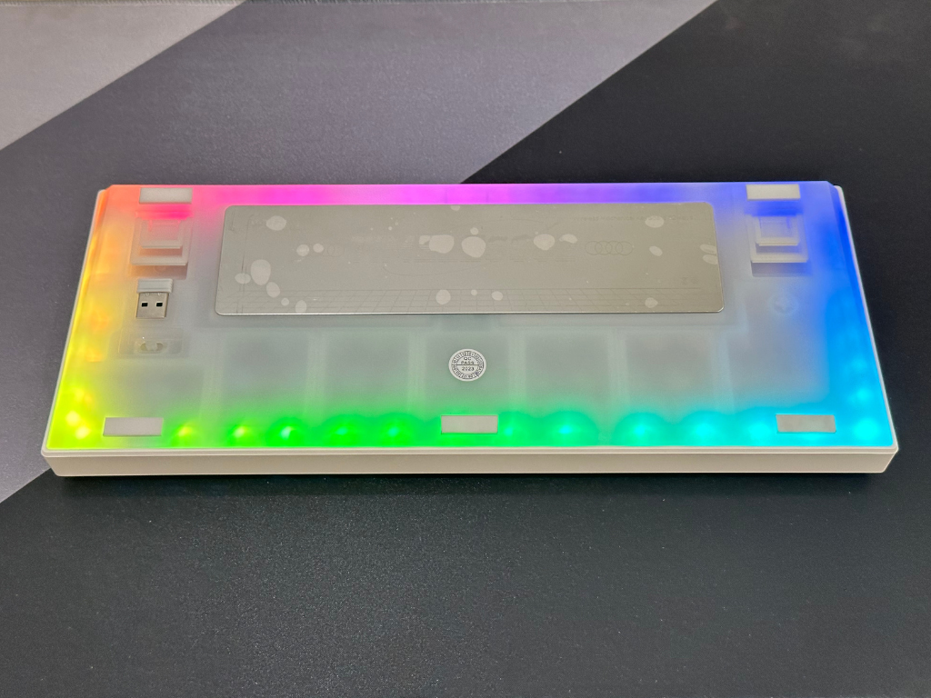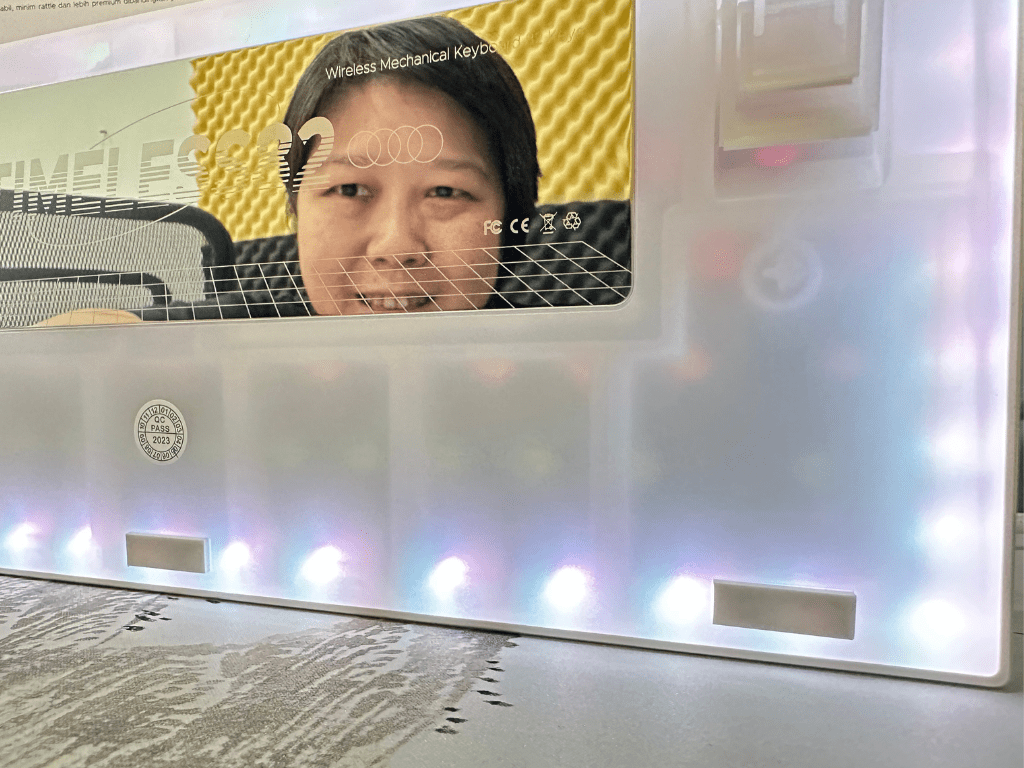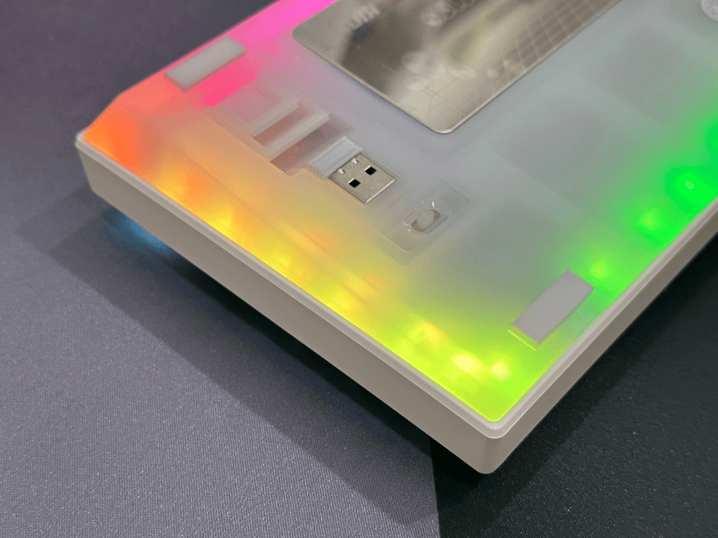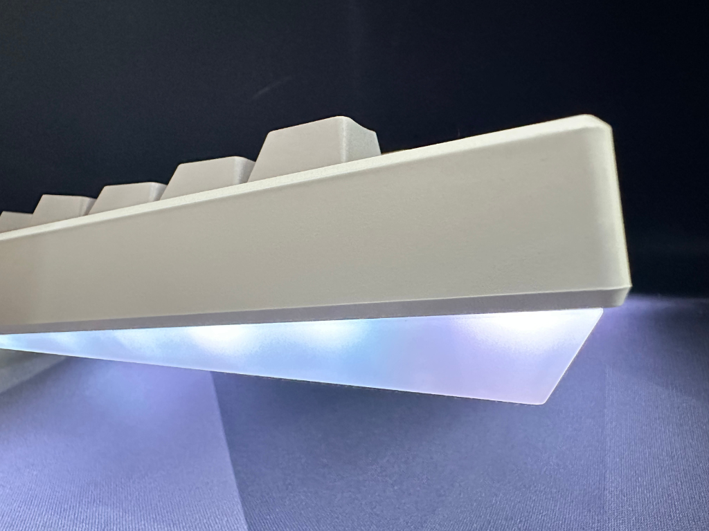 Di bagian samping kanan, kiri, dan belakang ada side glow RGB, untuk menambah estetika keyboard. Untuk mengubah mode side glow, gunakan Fn + PgUp, ada RGB horse racing, breathing cycle 7 warna dan constant light 7 warna.