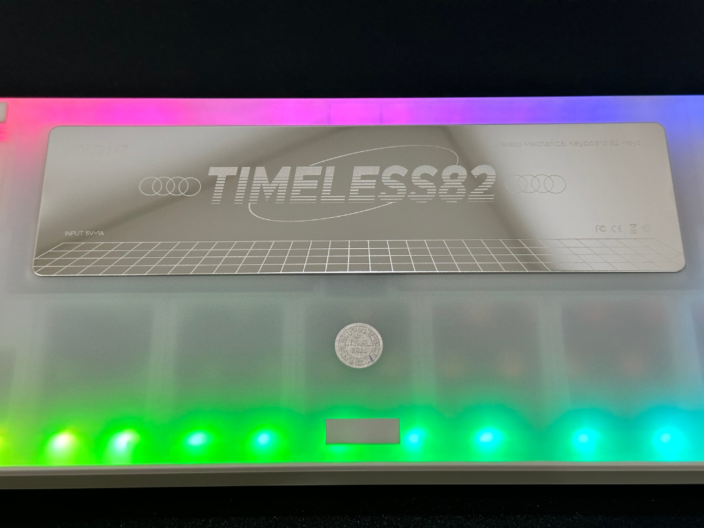 FOAM dan DAMPENER Pada bottom case, TIMELESS82 menggunakan silicone dampener yang sudah dicetak sesuai dengan case. Penggunaan silicone dampener yang frost transparan mendukung underglow, sehingga cahaya berpendar dengan baik. Jika ingin underglow, tidak mungkin menggunakan foam yang tidak tembus cahaya.