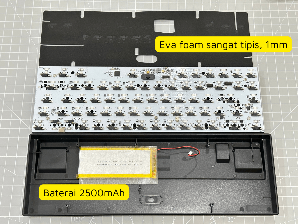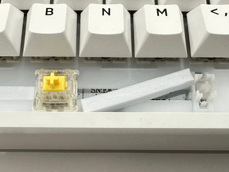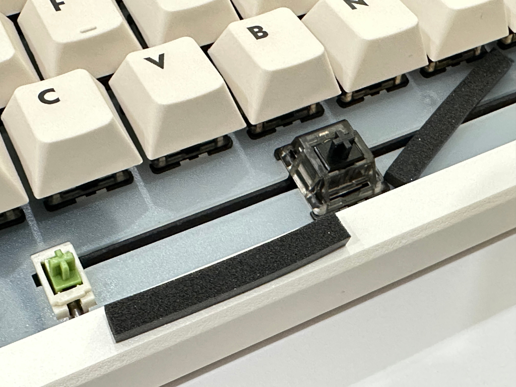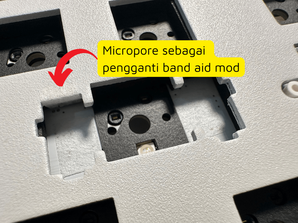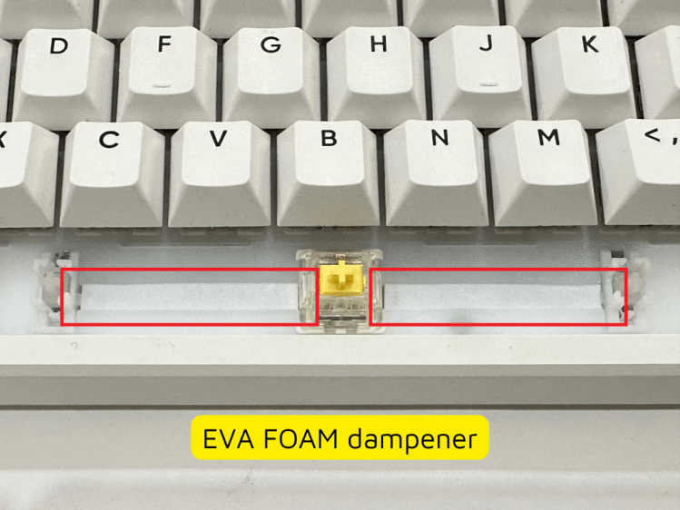 Pada spacebar, ada tambahan potongan foam yang membantu meredam dan membuat suara spacebar lebih bagus.