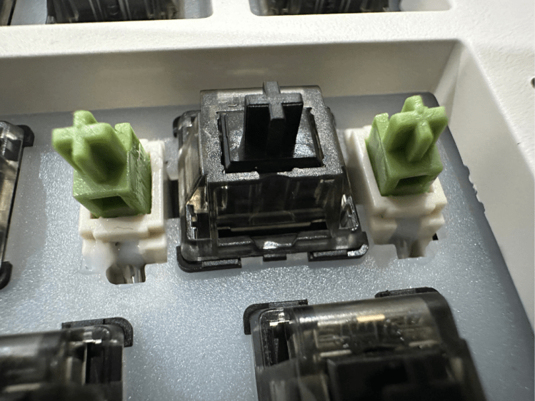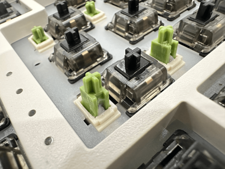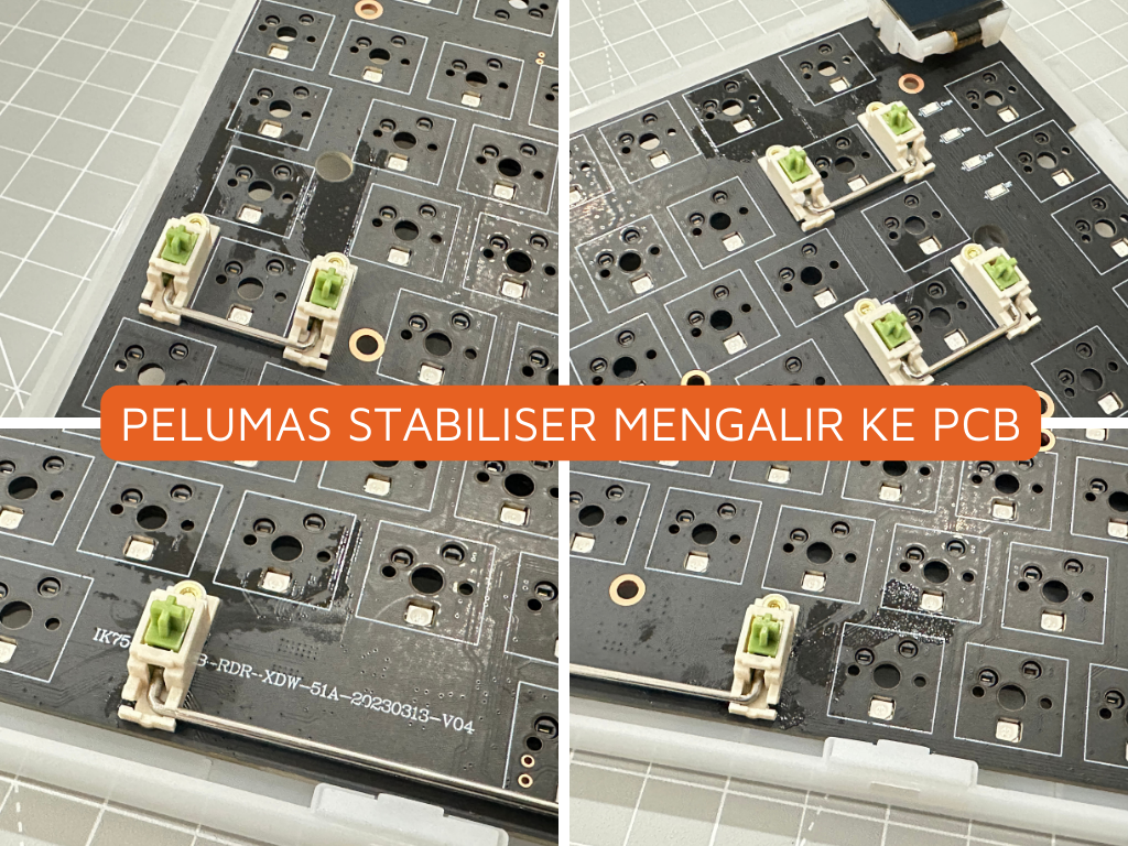 Stabiliser bawaan merupakan stabiliser PCB mount yang terpasang dengan baut ke PCB. Pada unit saya, stabiliser bagus dan tidak rattle walaupun kelihatannya pelumas cukup minim.