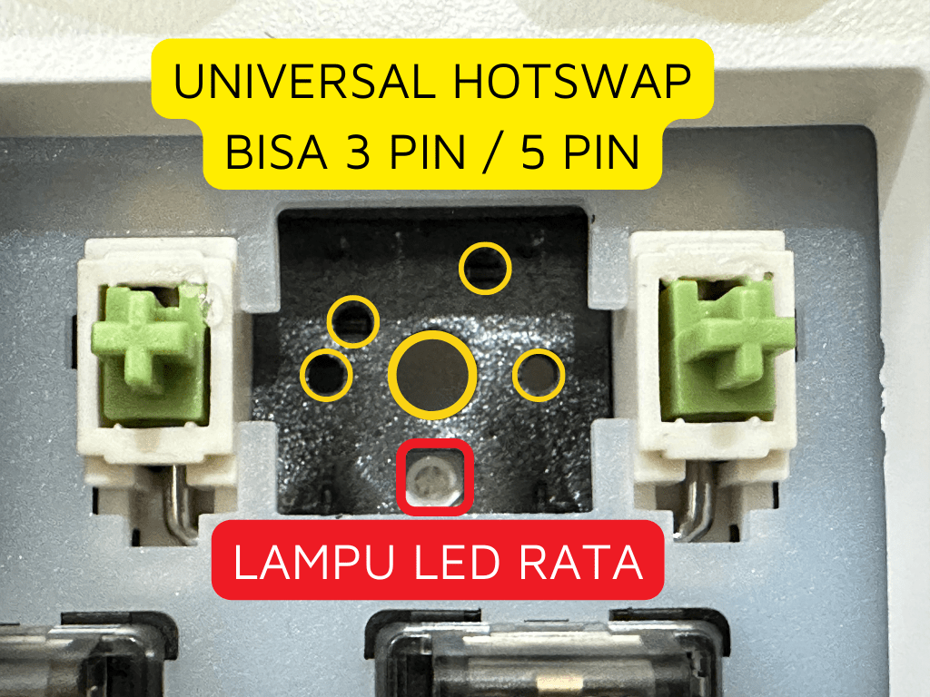 Berhubung keyboard ini tidak hotswap, pastikan Anda memilih switch yang disukai ketika membeli.