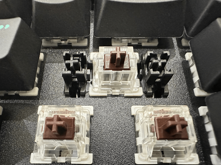 Satu hal yang saya temui pada unit saya, stem stabiliser di spacebar berbeda bentuk dan warna dari stabiliser lain. Apakah ini merupakan fitur atau kesalahan, mungkin butuh cek unit-unit yang lain.