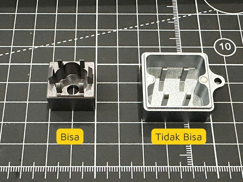 Gateron sudah mulai menggunakan cetakan baru untuk top housing, bahkan Gateron Yellow KS-3×47 (top milky, bottom hitam) juga sudah ada lekukan untuk menghindari interference. Mungkin saat ini cuma tersisa Gateron KS-3 (top dan bottom housing warna hitam) yang masih menggunakan cetakan lama.