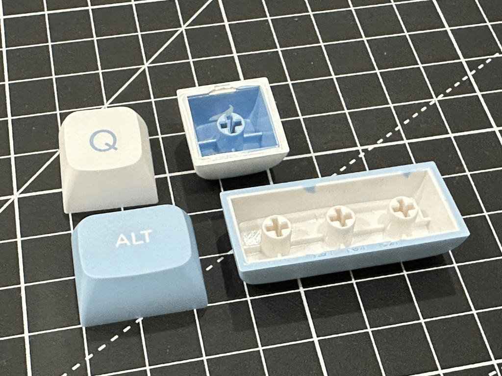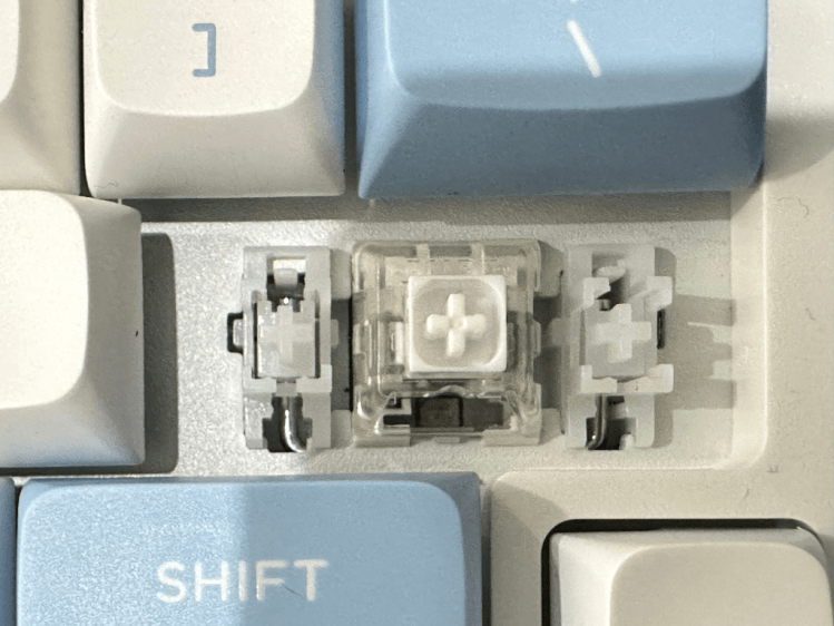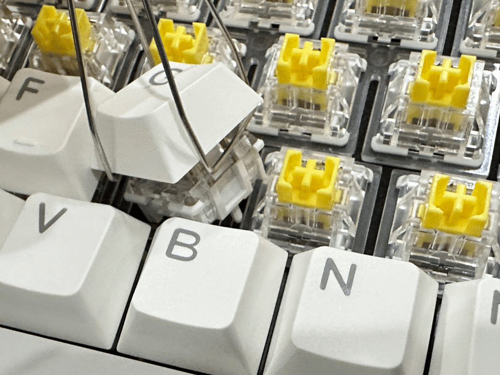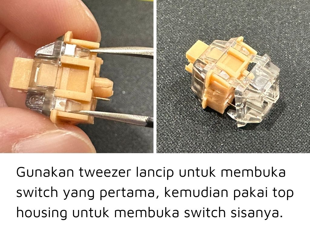 Ketika melepas keycap, harap agak berhati-hati karena stem keycap ada yang agak ringkih.