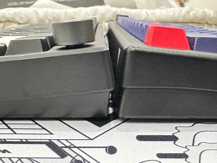 Keycap bawaan menggunakan cherry profile, sedangkan PCB masih north facing, apakah terasa ada interference (keycap menabrak top housing) di deretan ASDF? Saya tidak merasa ada interference karena switch menggunakan Gateron Yellow Pro v2, di mana top housing sudah ada lekukan untuk meminimalkan interference.