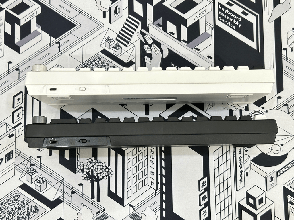 NOIR x YUNZII Vol 1 menyediakan tiga macam konektivitas: 1. Wired (kabel) USB type-C 2. Wireless 2.4Ghz dengan menggunakan dongle 3. Bluetooth 5.0 yang bisa terkoneksi dengan tiga perangkat Switch slider untuk memindahkan konektivitas ada di bawah keyboard