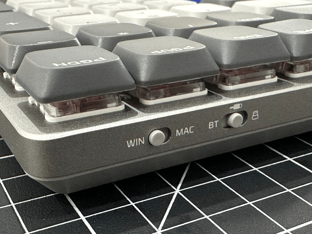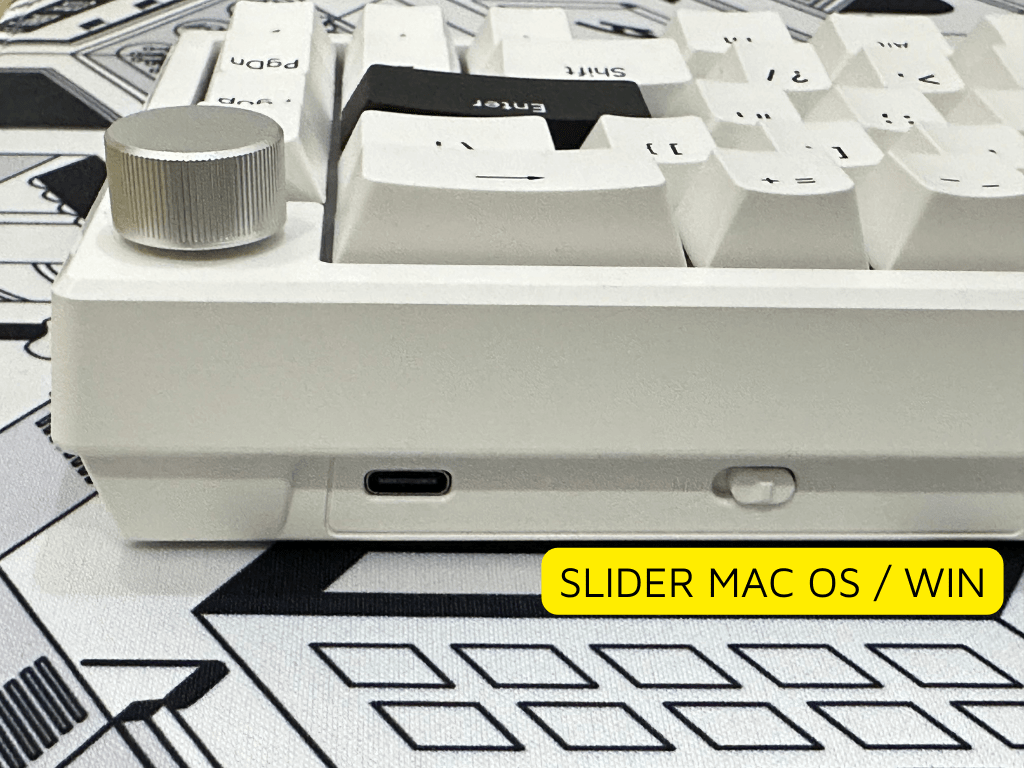 Anda bisa menggunakan Maxfit Air series ini dengan Windows OS atau MacOS, di bagian belakang ada slider untuk memilih Windows mode atau MacOS mode. Slider fisik seperti ini sangat memudahkan dibandingkan menggunakan combination key.