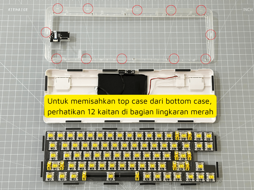 Ingat untuk melepaskan Knob terlebih dahulu sebelum memisahkan top case dan bottom case.