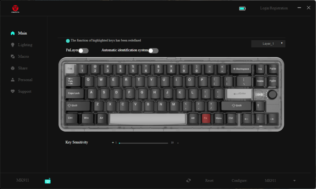 Untuk full key RGB, ada 18 mode backlight yang Anda bisa atur melalui shortcut Fn+ Del. Mengubah mode efek bisa menggunakan Fn + [{. Sedangkan kecerahan bisa diatur menggunakan knob atau Fn + Up Arrow / Down Arrow, untuk kecepatan Fn + Right / Left Arrow.
