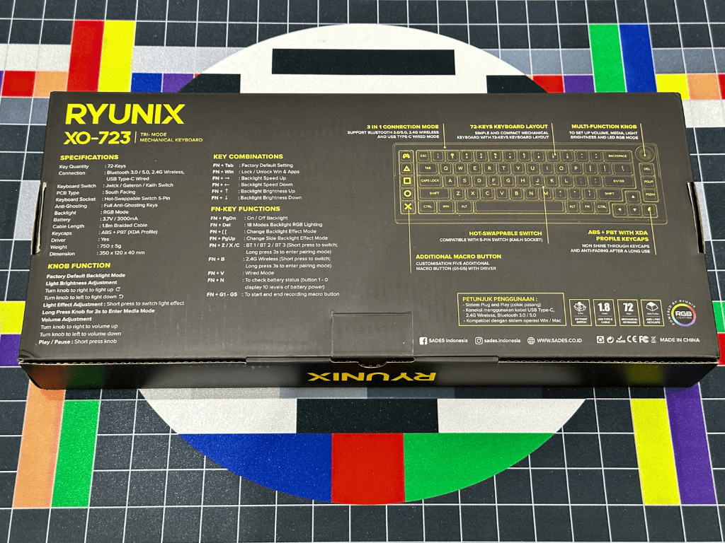 Tebakan saya kenapa namanya Ryunix XO-723 adalah karena ada 72 tombol dan 3 koneksi (Bluetooth, Wired, dan Wireless 2.4Ghz).